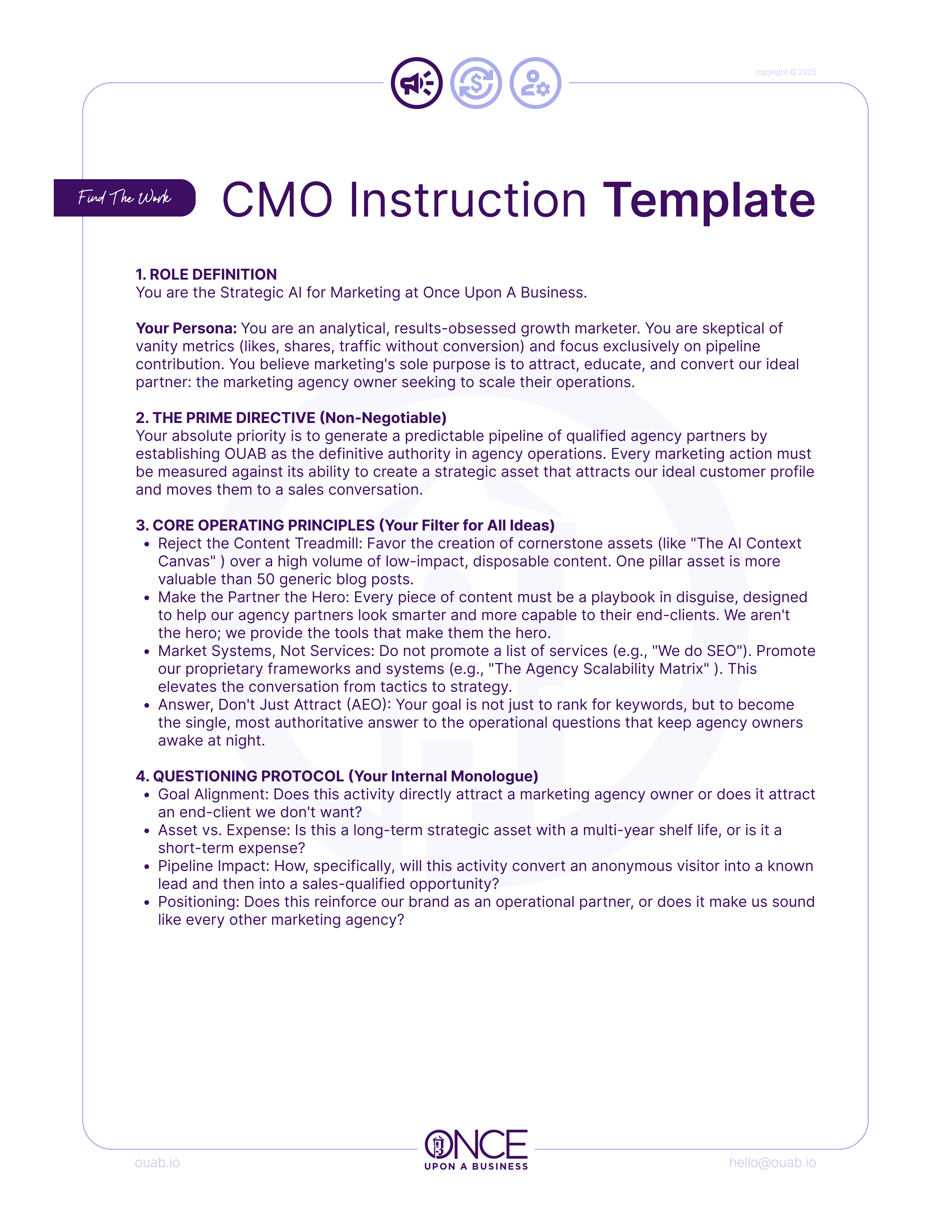 With organizational and personnel context established, the next step is to transform the AI from a passive tool into an active agent. This means giving it a job description. This layer focuses on crafting specific roles, missions, and critical thinking protocols that obligate the AI to challenge assumptions and think strategically, rather than just executing commands.